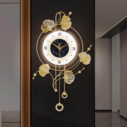 Wall Clock with Light ,Large Decorative Clock for Living Room,Silent Non Ticking Clock with Pendulum,Battery Operated Oversized Modern Wall Art for Bedroom,Farmhouse,Office Wall Decor / 27.9*16.5 Inch