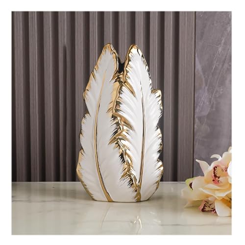 Nordic Light Luxury Gold Painted Ceramic high-end vases-Elegant Home Decor-Flower Vase/Contemporary Design – Wedding Table Accent – Boho Pottery (Color : White, Size : L)