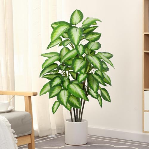 【Lifelike Appearance】Carefully crafted to mimic the appearance of a real live golden dieffenbachia, looking as close to reality as possible, perfect for any room or office decor. 5 strong trunks adorned with 85 evergreen leaves with variegated margins, clearly textured and vivid color makes this faux silk plant a timeless home decor for all seasons and will definitely make you feel the existence of nature.