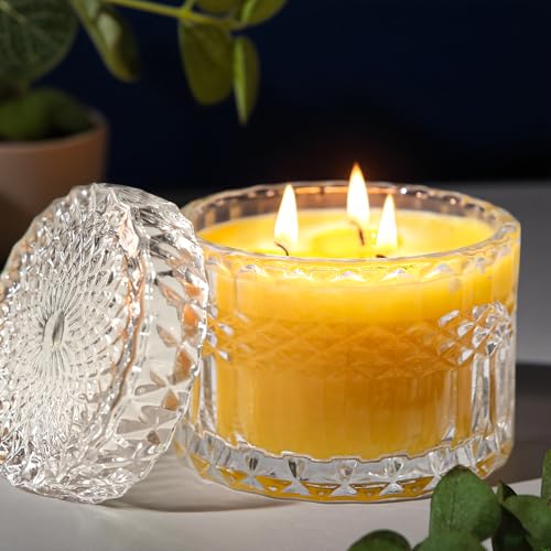 Beeswax Jar Candles for Home Scented, 3 Wick Honey Scented Candle, 7.05oz Natural Beeswax Candles in Glass, 100% Organic Wax Jar Candle for Gift, Home Decor, Living Room, Bedroom, Over 25H Burn Time