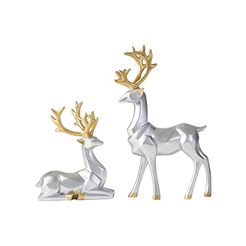 2pcs 3D Geometric Elk Resin Statue, Seated and Standing Elegant Lucky Deer, Luxurious Simple Style Ideas, Suitable for Living Room, Wine Cabinet, Display Stand, Bedroom, Office Desktop