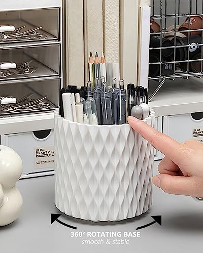 ROTATING PEN PENCIL HOLDER FOR DESK: A brand new unique design with water ripple pattern, 5 slots and smooth rotating base for pen holder desk organizer. Its simple and neutral design makes it easy to fit in with just about any decor for your home vanity school office desk art supply accessories
