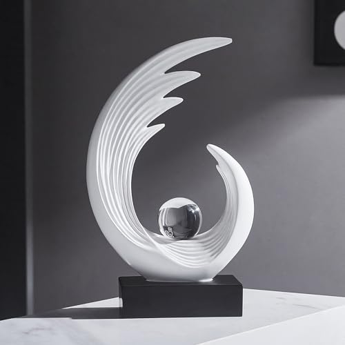 FJS Modern White Statue, Resin Shelf Decor, Abstract Art Sculptures for Living Room, Bookshelf, Dining Room, Office, Coffee Table, TV Stand
