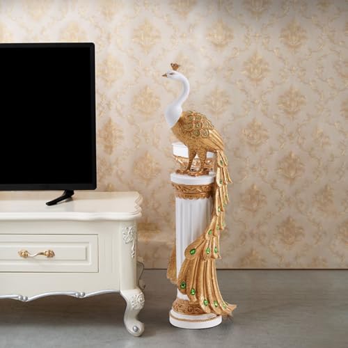 homary 27.6″ Decorative Peacock Statue Large Glam Animal Sculpture Resin Crafts Home Decor for Art Ornament (White & Gold)