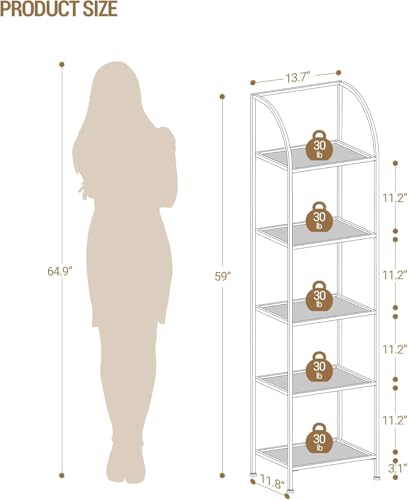Specification: Hzuaneri Bookcase Bookshelf, Tempered Glass Arched Bookshelf for More Storage, Slim Shelving Unit for Bedroom, Bathroom, Home Office, Steel Frame, 5 Tier Gold BC20599G