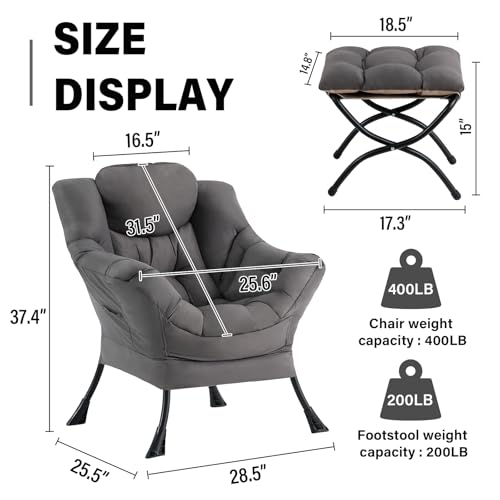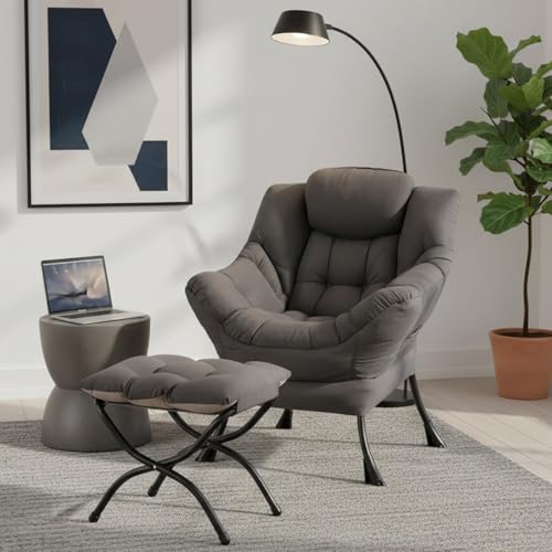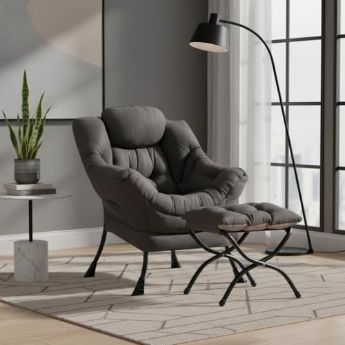 Specification: Lazy Chair with Ottoman, Modern Accent Chair Contemporary Sofa Chair with Armrests, Reading Chair and Folding Footstool Set for Living Room, Bedroom, Office, Dark Grey