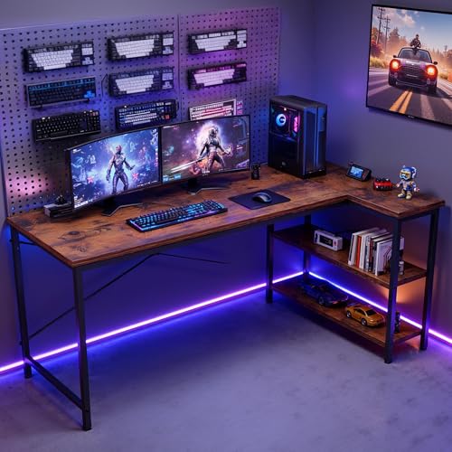 Specification: DUMOS L Shaped Desk 47 Inch Computer Desk Gaming Furniture Corner Desks Home Office PC Table with Reversible Storage Shelves for Writing Working Study Bedroom Dorm, Rustic Brown