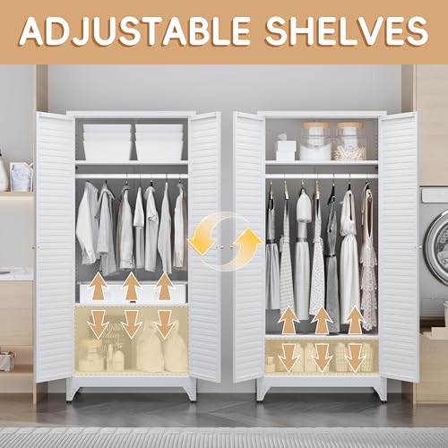 【Multi Scenario Usage】This closet cabinet features a louvered door design, simple but layered, versatile and timeless. It is corrosion-resistant, wear-resistant and easy to clean. As a practical bedroom storage cabinets solution, it is suitable for any home space such as bedrooms, laundry rooms and closets, and also ideal for commercial venues including gyms, offices, hospitals and restaurants