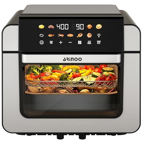 【Trusted Quality】 cETL approved with advanced safety tech. ARINOO all in one air fryer convection toaster oven is backed by a 1-year factory warranty. Lifetime customer support ensures lasting value and performance.