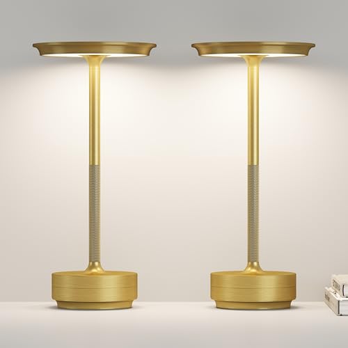 Cordless Rechargeable Table Lamp,LED Portable Touch 5000mAh Battery Operated Table Lights,with Memory Function 3-Level Brightness for Patio,Bars,Bedroom,Outdoor,Dinner,café(2P Gold)