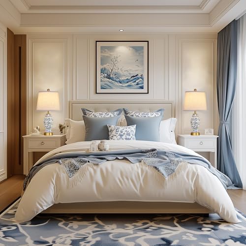 Elegant & Unique Design: Inspired by Chinese-style celadon porcelain, this living room table lamp set of 2 comes with a hand-painted blue Roland vine pattern on the surface, perfectly integrating natural elements into the main body of the lamp. It is not only elegant and beautiful, but also able to adapt to modern, vintage, farmhouse, rustic and many other do different home styles.