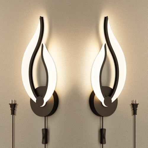 Modern LED Wall Lamps for Bedrooms Set of 2 Black Plug in Wall Light Fixtures 3000K 10Watt Wall Mounted Bedside Lamps 110V AC