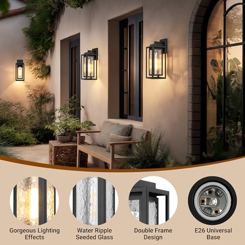 Specification: Water Ripple Outdoor Wall Lantern, Exterior Porch Light Fixture Black, 2 Pack Waterproof Wall Lights Fixture, Outside Garage Sconce Lighting, Porch Light Fixture, Mount Lamp, for Patio Outdoor Indoor