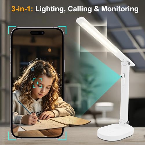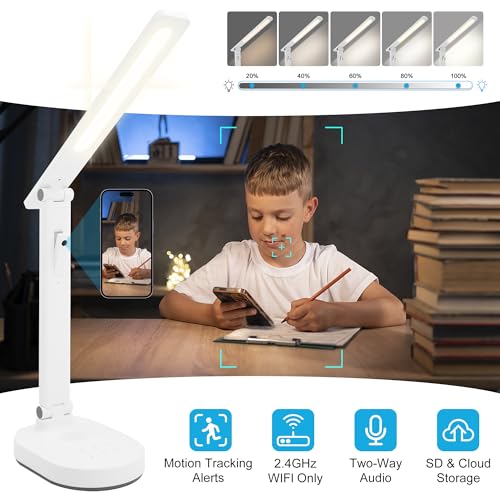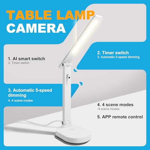Smart Desk Lamp for Kids with 1080P Security Camera, 2-Way Audio, Desk Lamps for Home Office with Stable Base and 5 Lighting Modes, Table Lamp for Study with security camera for Work, Reading