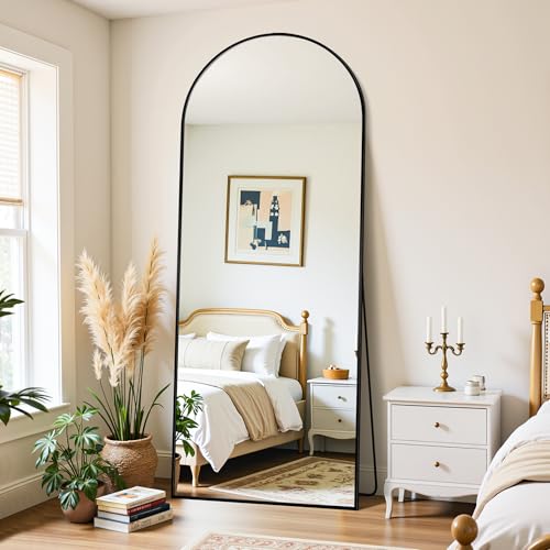Full Length Mirror, 71″x26″ Oversized Floor Mirror Freestanding, Full Body Mirror Floor Standing Mirrors with Stand, Hanging Mounted Mirrors for Bedroom Living Room, Black, Arched Style