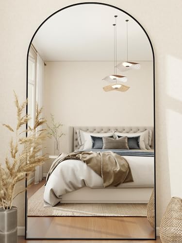 Elegant Full-Length Arched Design: Measuring 81″H x 41″W, this arched mirror provides a comprehensive view of your reflection, making it ideal for dressing or enhancing the visual appeal of your space; Its timeless arched silhouette, paired with a sleek black metal frame, complements a variety of interior styles, from modern to classic