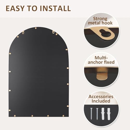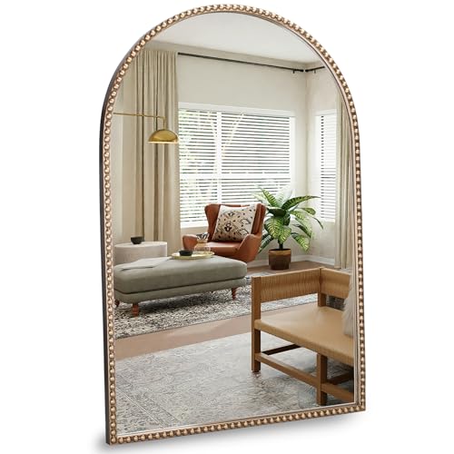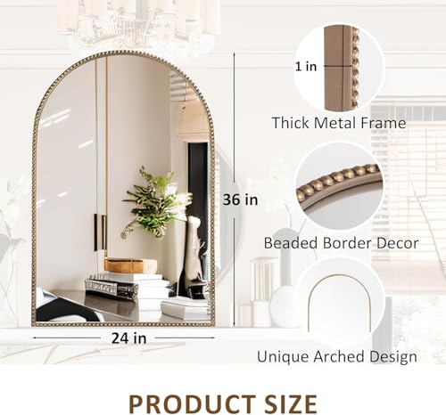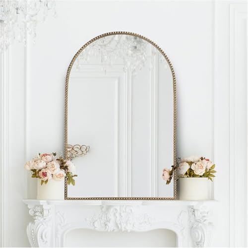 Specification: Arched Wall Mirror 24″ x 36″,Antique Gold Metal Beaded Frame, Decorative Accent Mirror for Bathroom, Living Room, Entryway & Bedroom