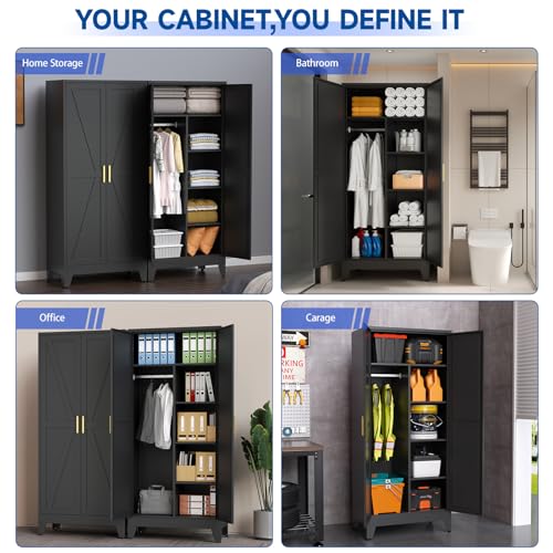 ✅️Quiet, Adjustable & Multi-Purpose Storage: This upgraded metal storage cabinet features magnetic door closures to minimize noise, creating a quieter and more comfortable environment. Adjustable feet ensure stability on uneven floors. Its versatile design makes it perfect for use as a wardrobe, storage cabinet, or file organizer in bedrooms, living rooms, offices, laundry rooms, or any space that requires secure and organized storage.
