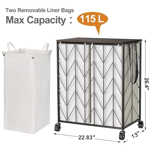 Large Capacity; Sort Laundry: The laundry basket has 2 bags with sufficient capacity (each laundry basket holds 57.5 L, a total of 115 L), helps you sort your clothes by color and material, keeps your clothes neatly organized and saves your time