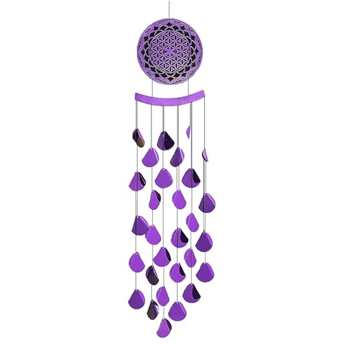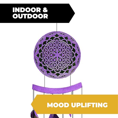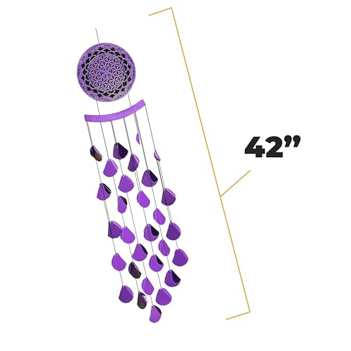 The VP Home 42 Shimmering Mandala Wind Chimes boast a unique design, making them an excellent decoration for gardens and an ideal gift for women, moms, grandmas, or anyone. These high-quality wind chimes induce a calming purple shimmer that can captivate anyone, indoors or outdoors.