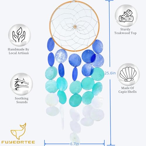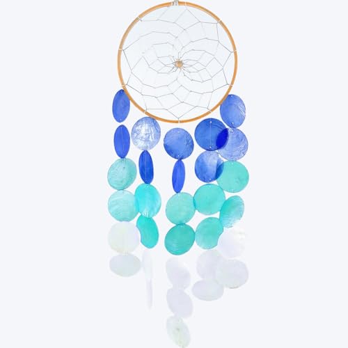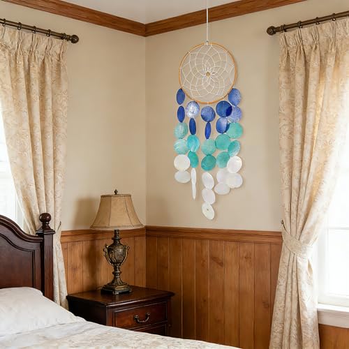 Specification: Wind Chimes for Outside Handcrafted Blue Dream Catchers Capiz Shells Seashell Sea Glass Arts Windchime Beach Coastal Crafts Garden Decor Gardening for Women Patio Finds