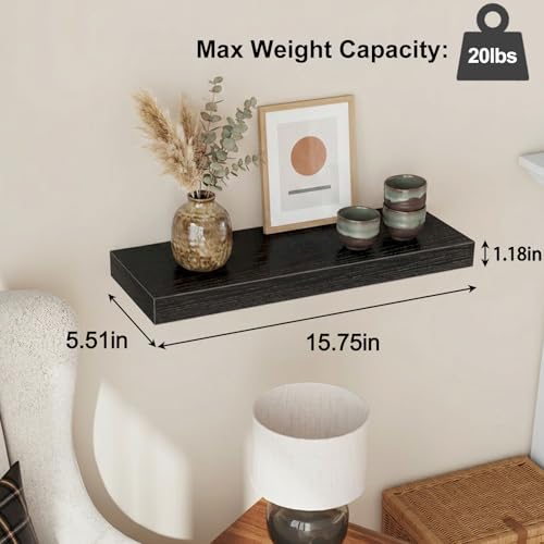 Specification: Fixwal Black Floating Shelves for Wall, Rustic Wood Shelves for Bathroom, Living Room, Bedroom and Kitchen, Wall Shelves for Storage, Books, Room Decor (Set of 4, 15.8 Inch)