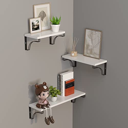 WELLAND White Floating Shelves for Bedroom Set of 3 Wall Shelves for Bathroom/Living Room/Kitchen- 11inch, 14inch, 16inch