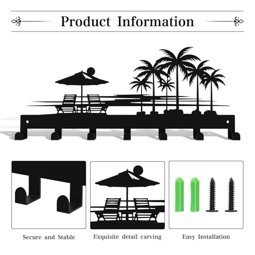 Tropical Style Design: The beach key hooks wall mount is composed of sunset, coconut trees, umbrellas and beach chairs, presenting the natural and comfortable tropical scene, and placing it at home can bring you a relaxed and cozy atmosphere.