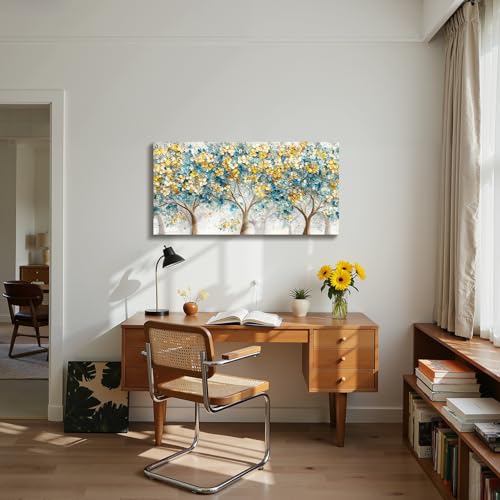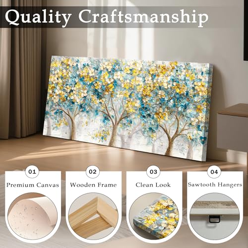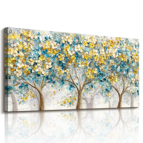 Specification: imjiayu Tree of Life Wall Art, Abstract Floral Tree Painting, Large Wall Decor for Living Room Bedroom Office, Blue and Gold Canvas Wall Art, Modern Luxury Artwork Ready to Hang, 20×40 Inch