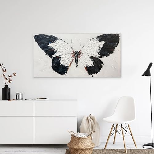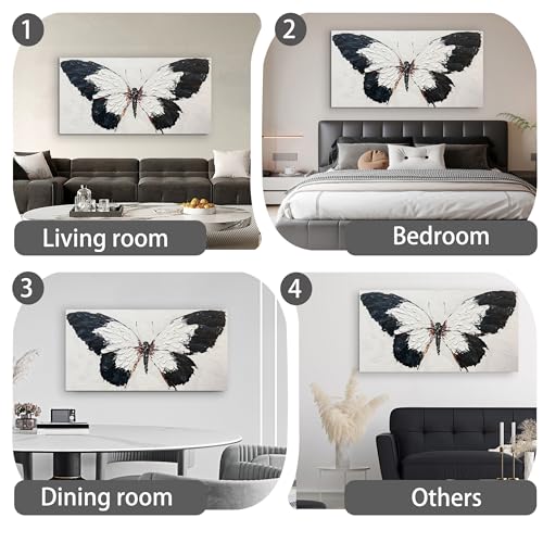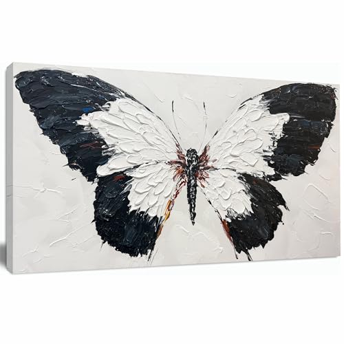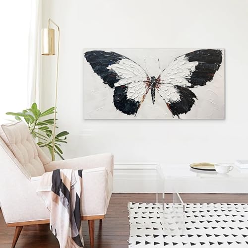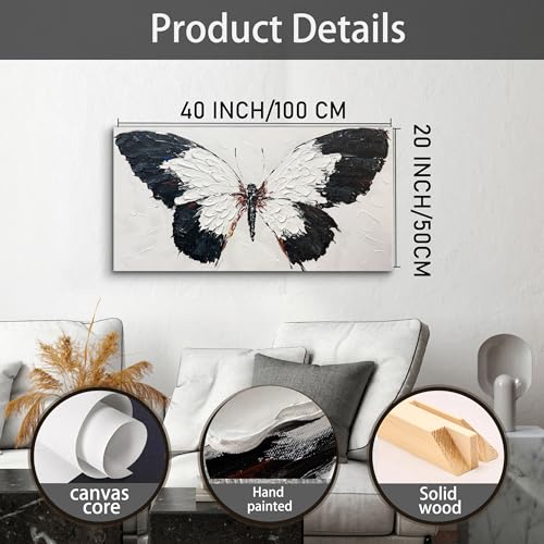 Specification: Tarfupth Black and White Butterfly Wall Art for Living Room Hand Painted Butterfly Oil Painting Texture Pictures Large Artwork for Bedroom Office Kitchen Room Aesthetic Decoration 20″x40″