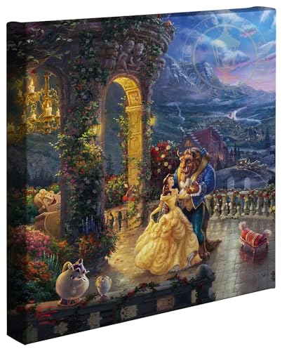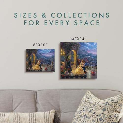 Thomas Kinkade Disney Beauty and the Beast Dancing in the Moonlight Gallery Wrapped Canvas Art | Frameless Wall Art Decor | Certificate of Authenticity Included, 14″ x 14″
