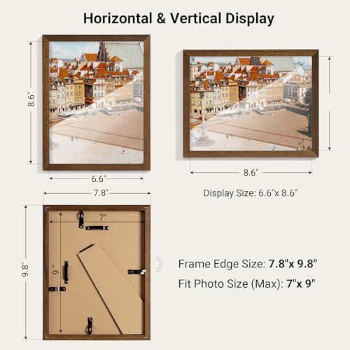 7×9 Solid Oak Frame: Crafted from premium oak wood, this durable frame showcases natural grain, ideal for enhancing rustic or modern galleries.The photo frame opening display will be 0.5 inches smaller than the photo to hold the photo better. Upgrade your display with this stylish and durable frame!