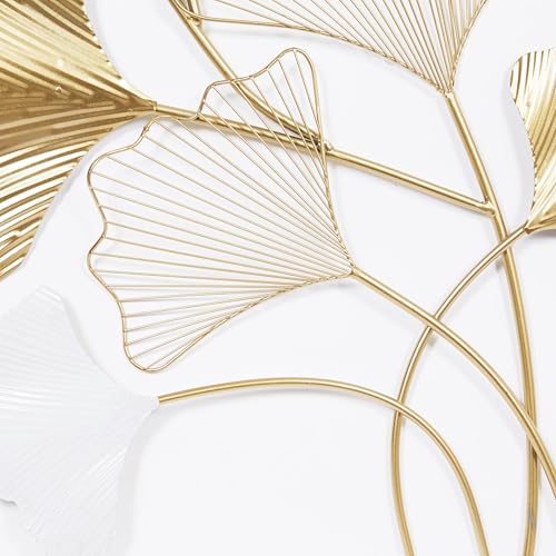GOLD WALL ART FOR LIVING ROOM: Asymmetrical decor for walls enhances your living space with its ten leaf structures, beautifully finished in metallic gold and white