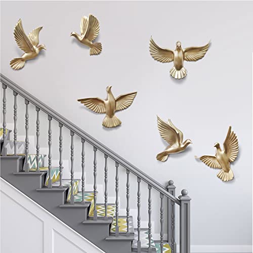 6 Pack Seagull Wall Decor, 3D Flying Bird Sculptures Wall Art, Resin Birds Dove Wall Hanging for Bedroom Home Decoration,Gold