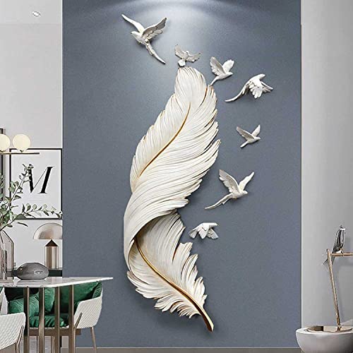 1. The Noble Large Feather Wall Decoration is a high-end wall art piece crafted in white metal that features seven flying birds and three-dimensional, vivid feathers. This eye-catching design adds unparalleled luxury and vitality to any home;