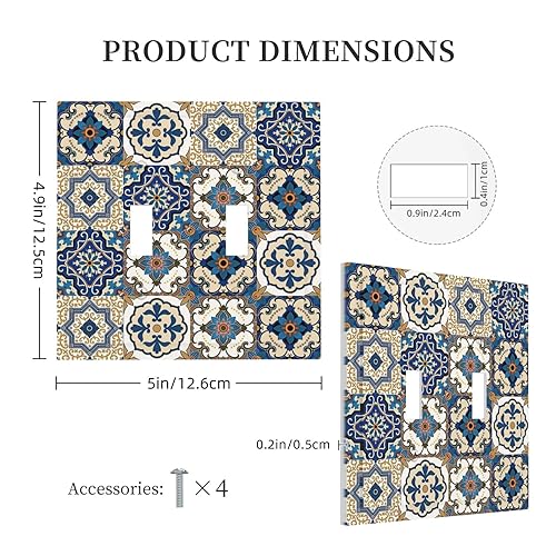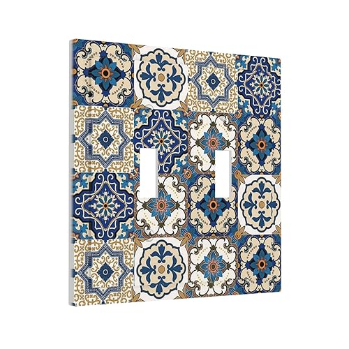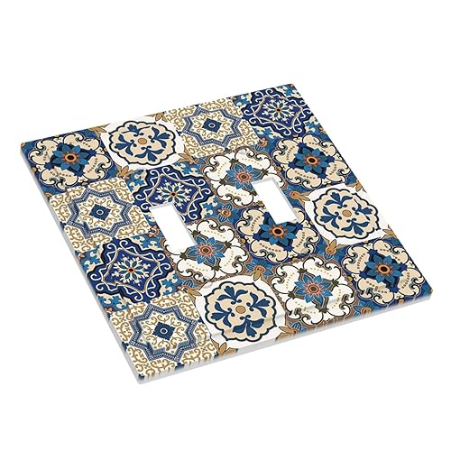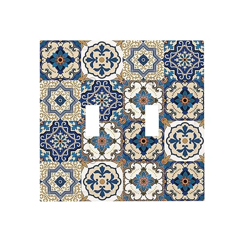 Specification: Light Switch Cover Boho Mandala Moroccan Talavera Tile Style 2 Gang Wall Plate Double Light Switch Plate Toggle Decorative Outlet Covers Electrical Switchplate for Kitchen Bedroom Decor