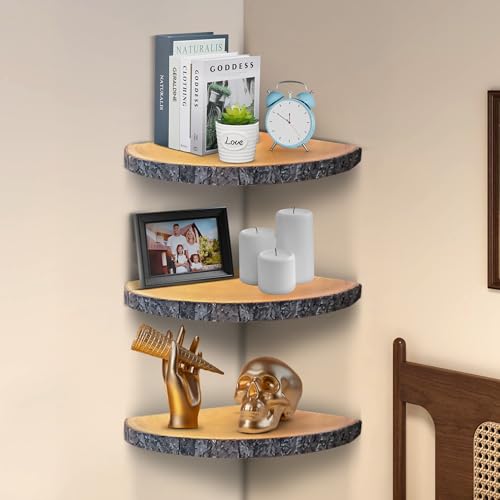 Rustic and Versatile Design – The natural wood texture, bark, and live edge finish blend smoothly with any home decor style, whether it’s farmhouse, modern, or traditional. Use this corner shelf wall mounted in the living room, bedroom, bathroom, or kitchen for both storage and decoration